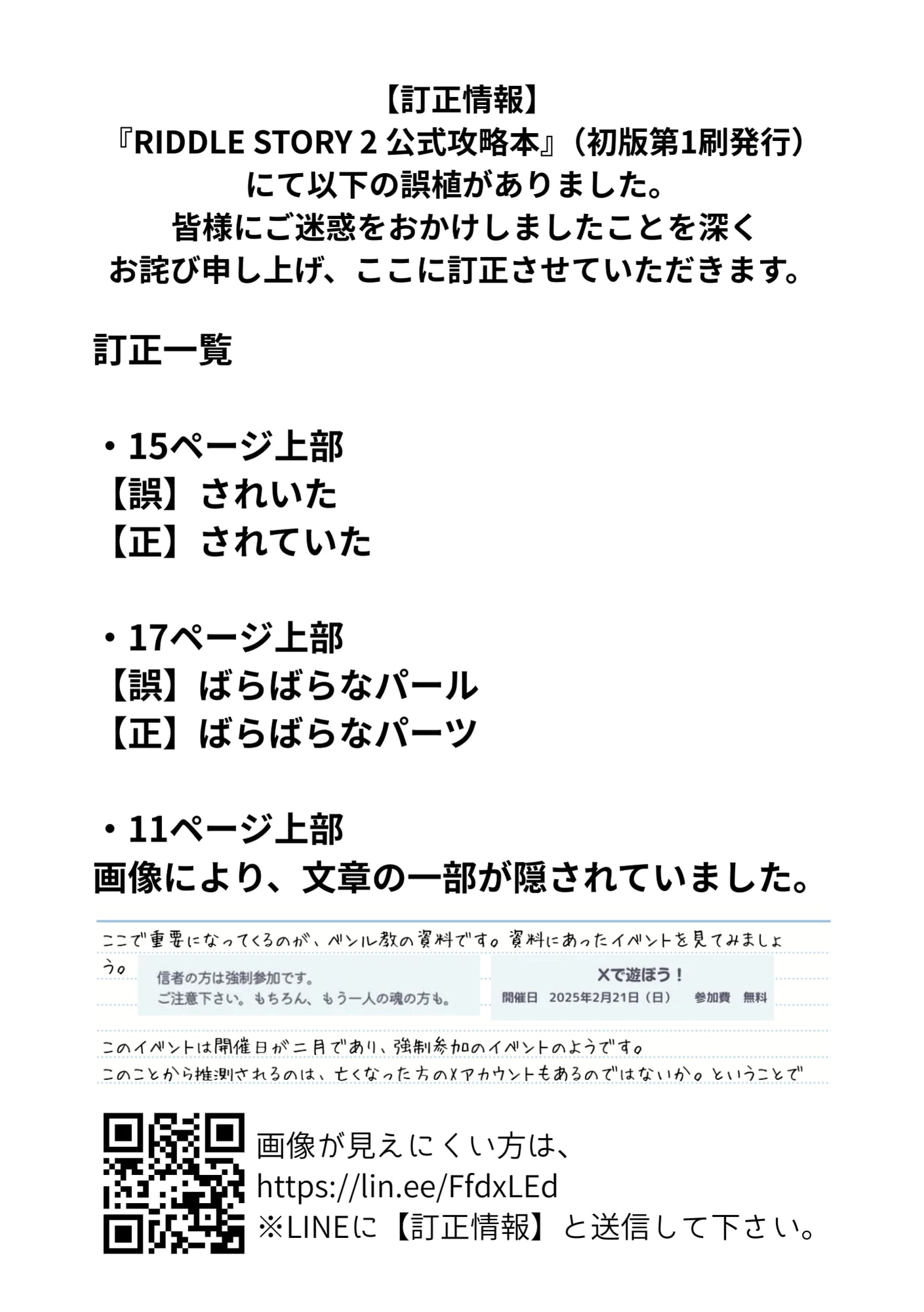 https://lin.ee/FfdxLEd LINEに【訂正情報】と送信して下さい。